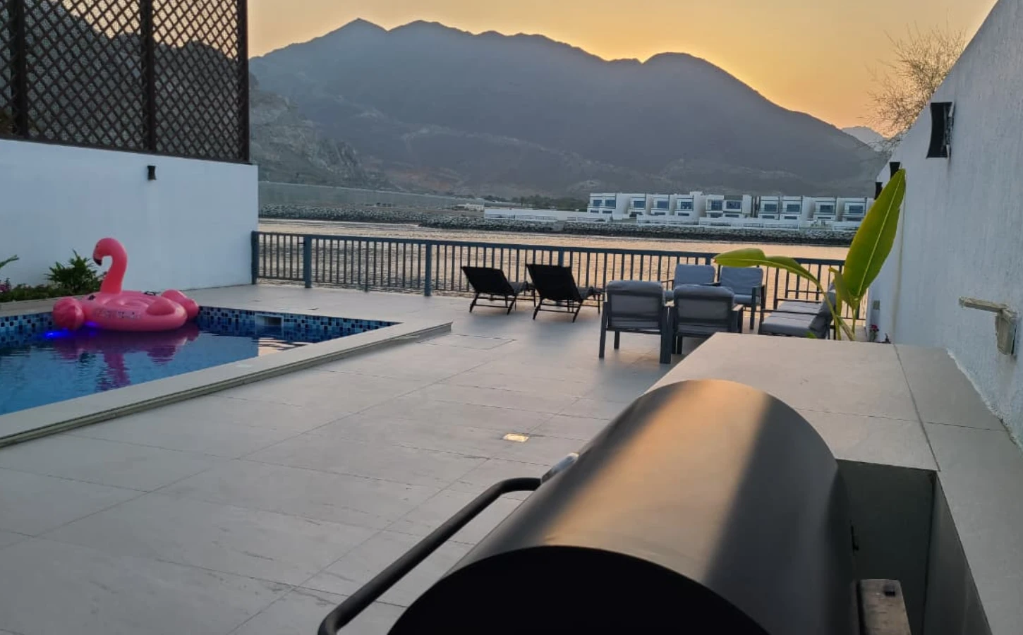 تقع هذه الفيلا الفاخرة في إمارة الفجيرة، وتتمتع بإطلالة خلابة مباشرة على البحر، ما يجعلها ملاذًا مثاليًا لعشاق الطبيعة والهدوء. توفر الفيلا إقامة راقية مجهّزة بتكييف هوائي ومسبح خاص، بالإضافة إلى شرفة واسعة تتيح للضيوف الاستمتاع بجمال البحر في أي وقت. كما تتوفر مواقف مجانية للسيارات وخدمة واي فاي مجانية لضمان أقصى درجات الراحة.
