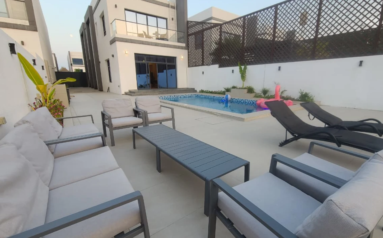 تضم الفيلا مسبحًا خاصًا يضيف لمسة من الفخامة، وتحتوي على أربع غرف نوم فسيحة وستة حمامات، مما يجعلها مثالية للعائلات أو المجموعات. كما تشمل جميع وسائل الراحة الأساسية، بما في ذلك مطبخ متكامل، وطاولة طعام، ومساحات معيشة مريحة.