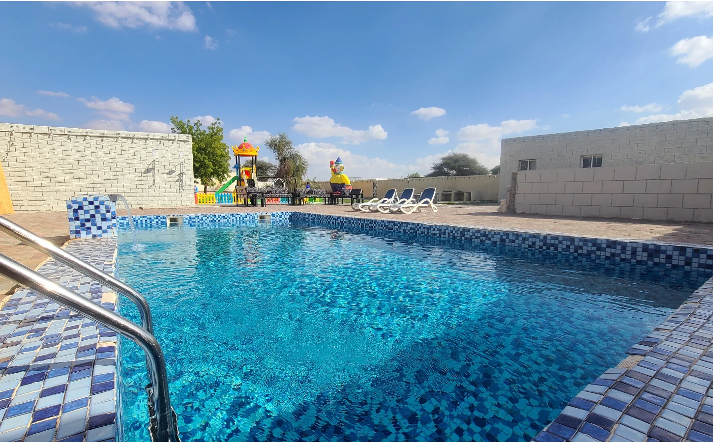 Located in the peaceful Masaken area of Al Ain City, this charming farm offers a perfect retreat for families and small groups seeking comfort, privacy, and relaxation. The property is thoughtfully designed to provide both indoor comfort and enjoyable outdoor spaces.