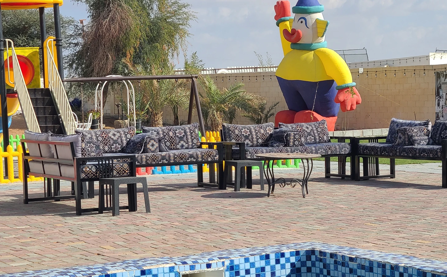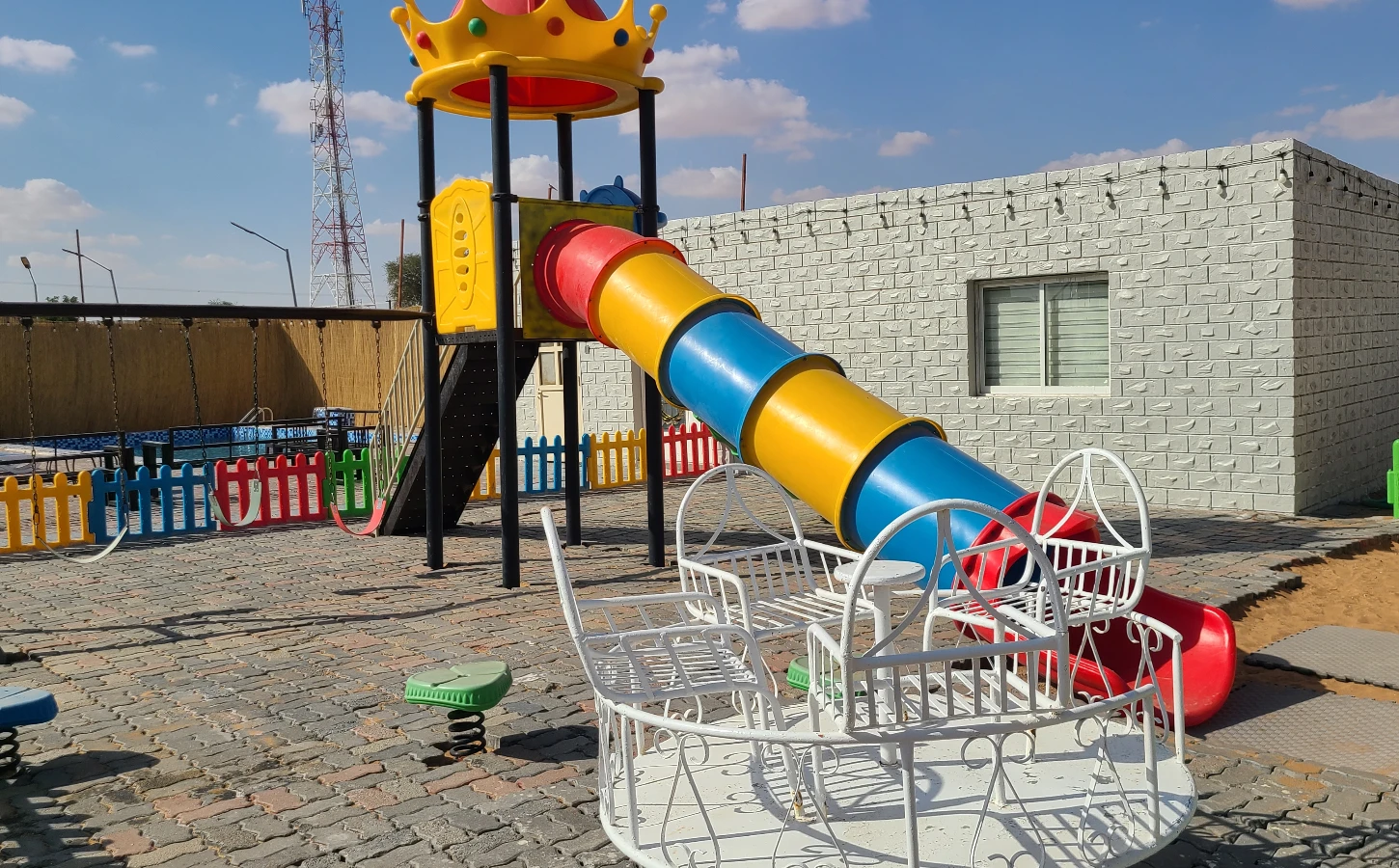 The farm features Wi-Fi and television, along with beautiful outdoor sitting areas ideal for relaxation and social gatherings. It also includes multiple play areas for children, making it a family-friendly destination.
