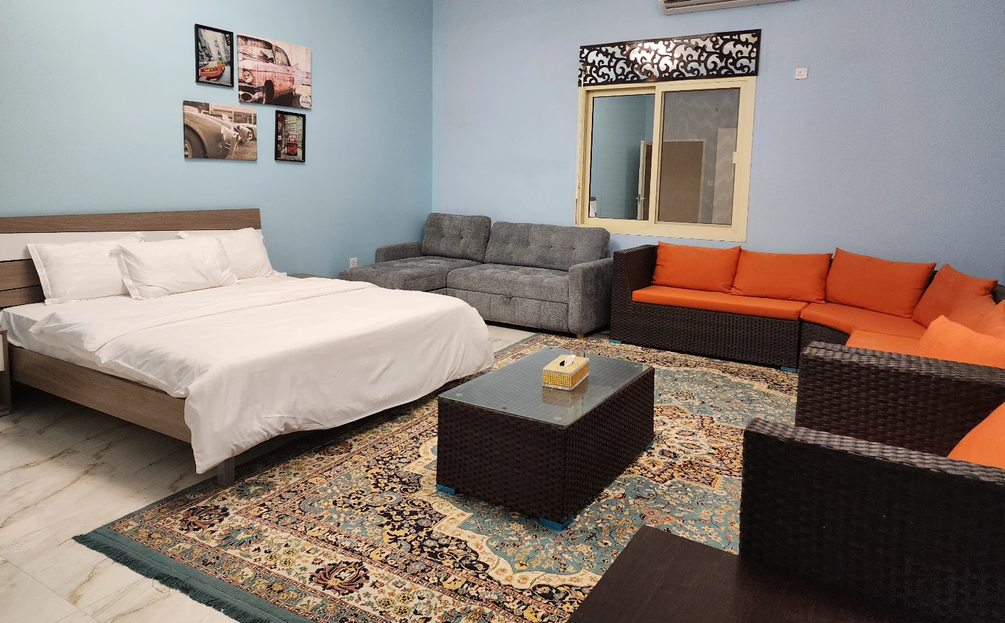 - Room : 1 king size bed + 1 sofabed